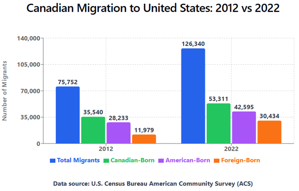 The data shows that the numbers of people migrating from Canada to the US nearly doubled in only 10 years (from 75,752 in 2012 to 126,340 people in 2022). To the US, many people are moving. Due to this fact, many more vehicles are now being shipped. More activity also helps auto movers provide service that is better as well as more affordable.